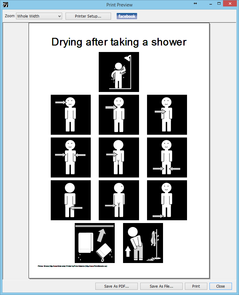 В меню выберите опцию “Напечать…”, откроется окно с вашим пикто-листом, отсюда вы можете отправить лист в печать на вашем принтере.
